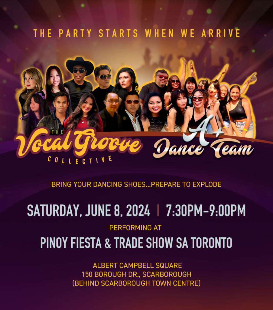 Mark your calendars and get ready to groove with the mega-group party machine featuring Vocal Groove Collective and A+ Dance Team as they take center stage at the Pinoy Fiesta & Trade Show sa Toronto on June 8th, 2024!